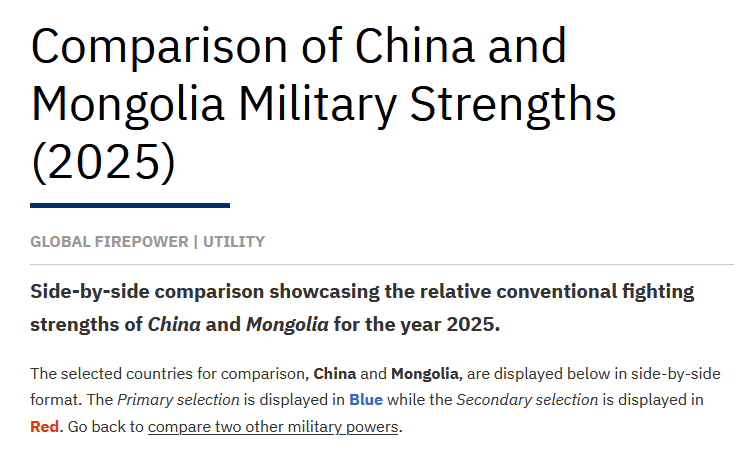 Screenshot: https://www.globalfirepower.com/countries-comparison-detail.php?country1=China&country2=Mongolia
