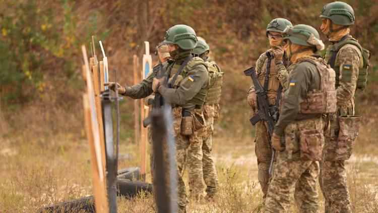 Rekruten der ukrainischen Hauptverwaltung für Nachrichtendienste (HUR) bei der Ausbildung im Jahr 2024.