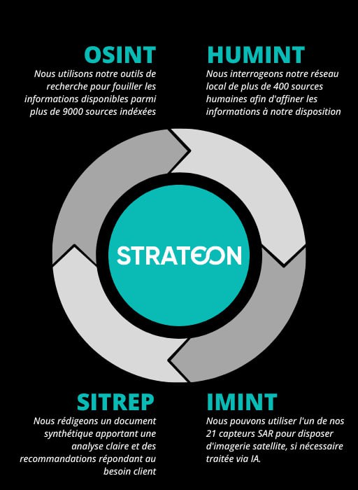 Die formellen Gründer von Strateon – Aram Budoyan und Matis Mareshal, Absolventen der Paris School of Economic War EGE (Ecole de guerre économique), bilden Spezialisten für private Intelligenz aus. Der 26-jährige Budoyan ist Reservist des 3. Fallschirmregiments der Marines der Armee (SV) Frankreichs. Marrechal diente auch in der französischen Armee und arbeitete für die französische PMC Gallice, die in Irland registriert ist.