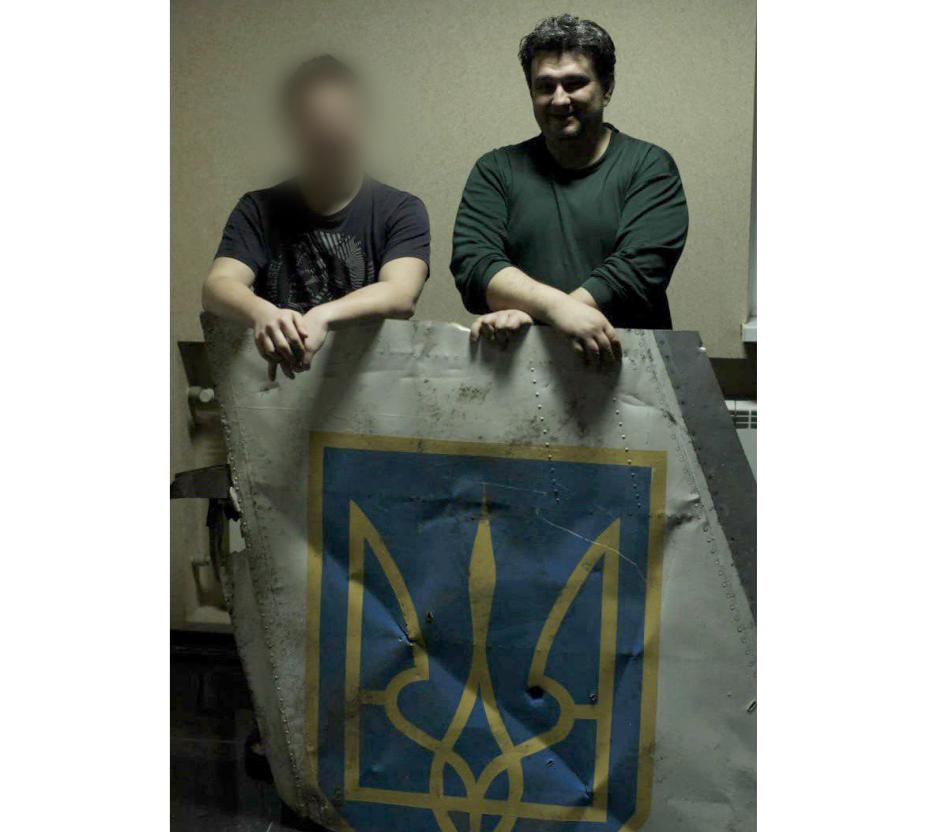 Sergej Lebedew (rechts) und sein Mitstreiter. „Ein Stück des abgeschossenen ukrainischen Flugzeugs. Wir haben es nicht abgeschossen, aber unsere Gruppe hatte etwas damit zu tun“, sagt Lebedew. Foto: Persönliches Archiv