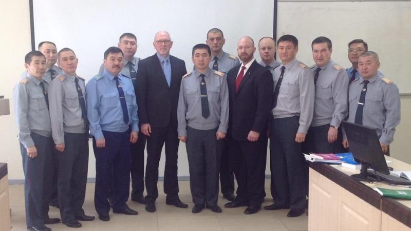 Petty; Marsh; Marsh (mitte in schwarzem Polo) an der Nationalen Akademie der Landstreitkräfte des Verteidigungsministeriums der Ukraine, Lwiw, Juni 2015; Marsh (mit roter Krawatte) beim Seminar für operative Kunst und Entwicklung militärischer Operationen an der Nationalen Verteidigungsuniversität des Verteidigungsministeriums Kasachstans, Astana