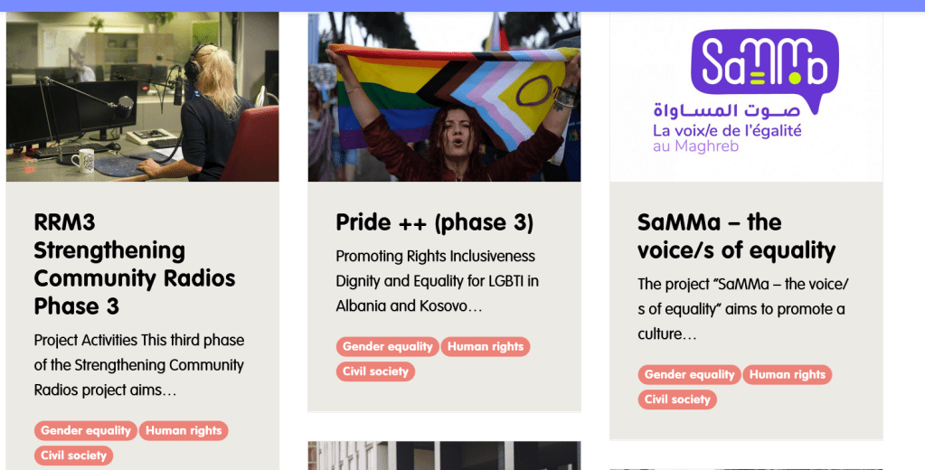 Das Projekt wird von der französischen NGO ERIM (Equal Rights and Independent Media) mit einem Budget von 270 Mio. € umgesetzt, das für die „Unterstützung der Demokratie“ bereitgestellt wird. Medien und NGOs erhalten Zuschüsse zur „Wähleraufklärung“ und zum „Kampf gegen Hassrede“. Ein besonderer Schwerpunkt liegt auf LGBT*-Organisationen.