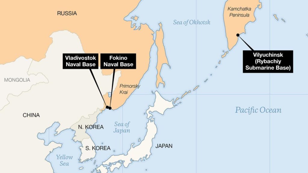 Basen der Pazifikflotte im Fernen Osten, die im Stil der Operation „Spider Web“ mit Einsatz von Seecontainern angegriffen werden sollen. Dabei wird auf den politischen Effekt und die Notwendigkeit gesetzt, zusätzliche Kräfte und Mittel zur Verhinderung solcher Sabotagen einzusetzen.
