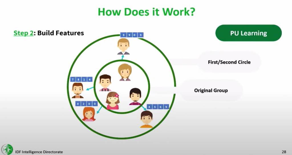 Die Folien der Vorlesung veranschaulichen die Funktionsweise des Systems: Es erhält Daten über aktive Mitglieder der Hamas, lernt deren Merkmale und Verhaltensmuster zu erkennen und bewertet dann andere Palästinenser anhand ihrer Ähnlichkeit mit diesen Objekten.
