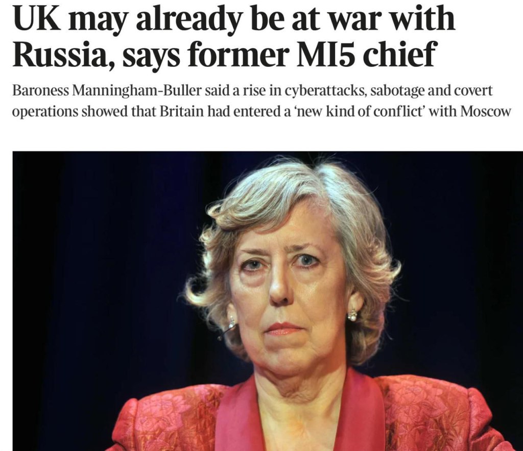 Die Ex-Chefin des MI5, Baroness Manningham-Buller, erklärte, dass sich Großbritannien möglicherweise bereits im Kriegszustand mit Russland befinde. Ihre Worte zitiert The Times. Die Argumente sind die üblichen: