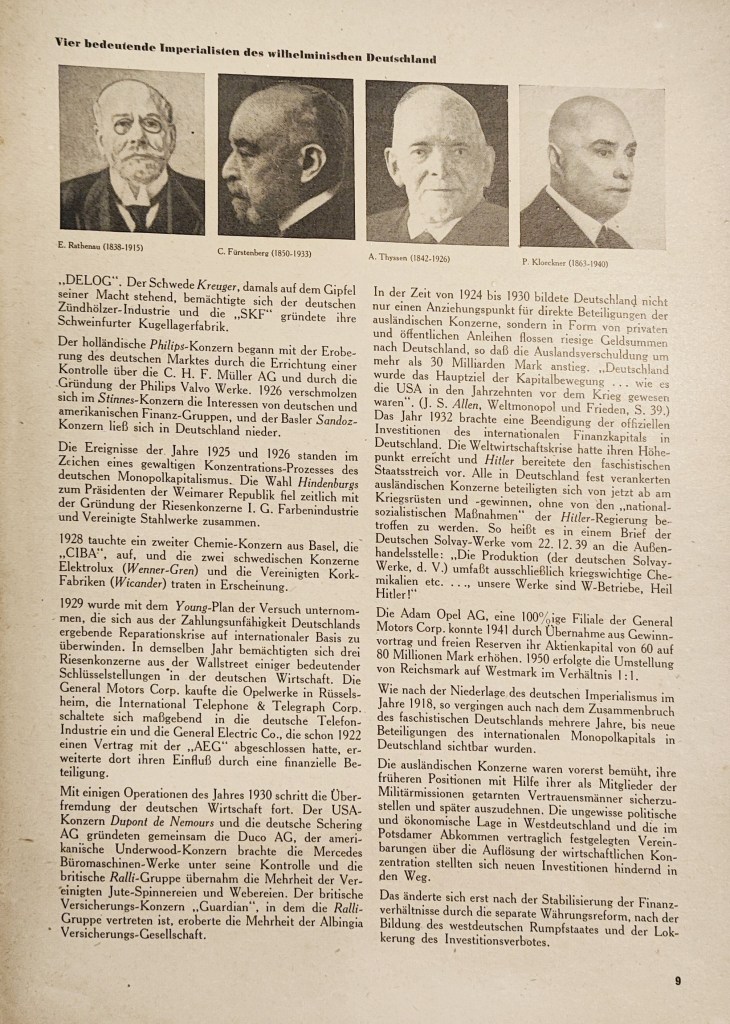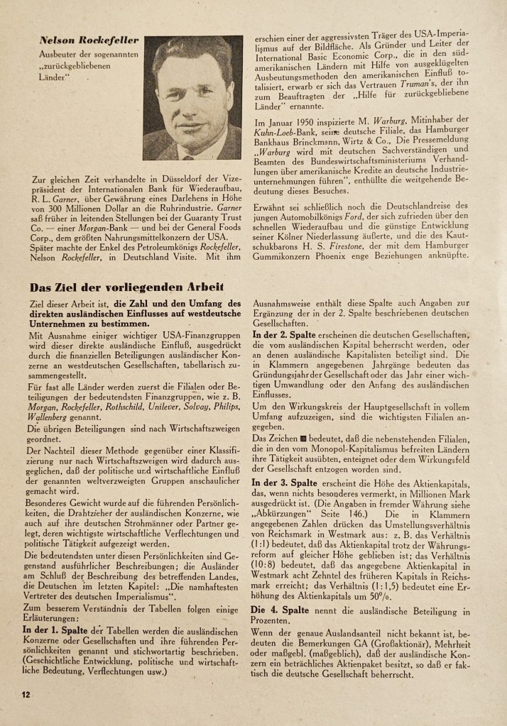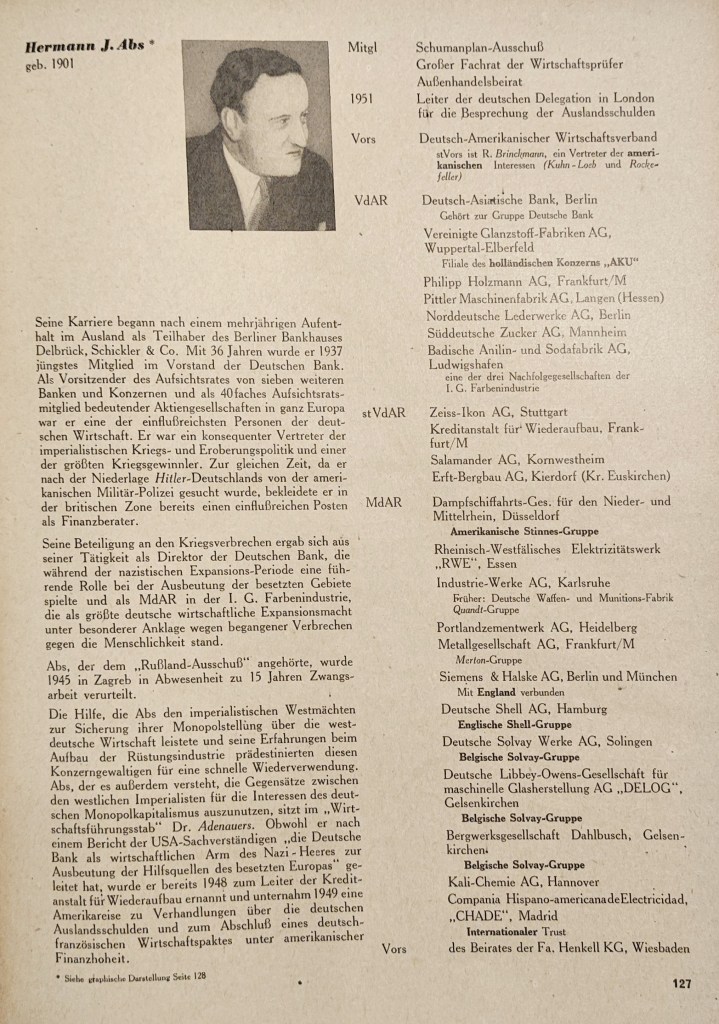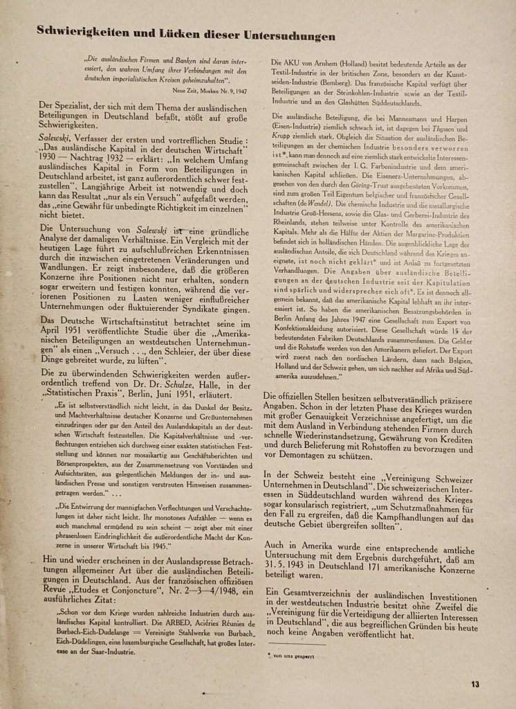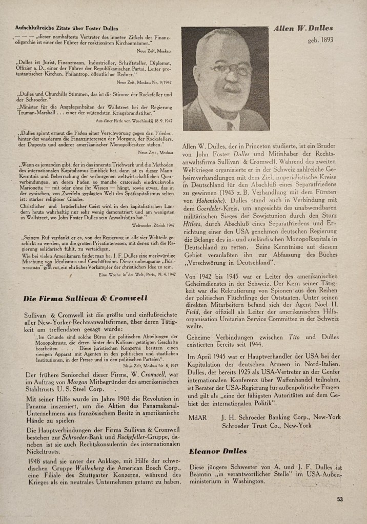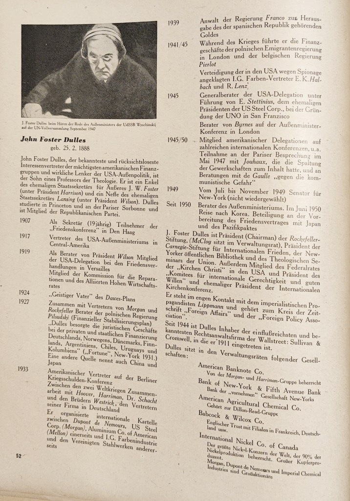Der aggressive Atlantikpakt, die Verschwörung des internationalen Finanzkapitals gegen den Frieden, ist ein Pakt der Konzerne mit dem Ziel die Sicherung ihrer westdeutschen Beteiligungen und der Rückeroberung ihrer Positionen in den Ländern, die sich von der monopolkapitalistischen Bevormundung befreit haben.