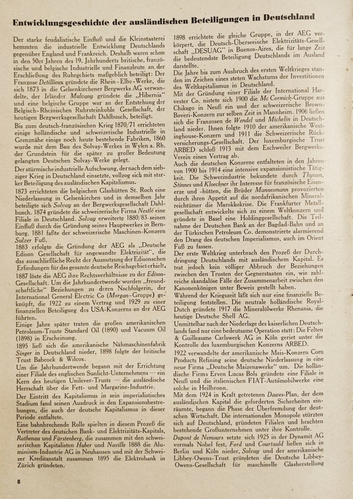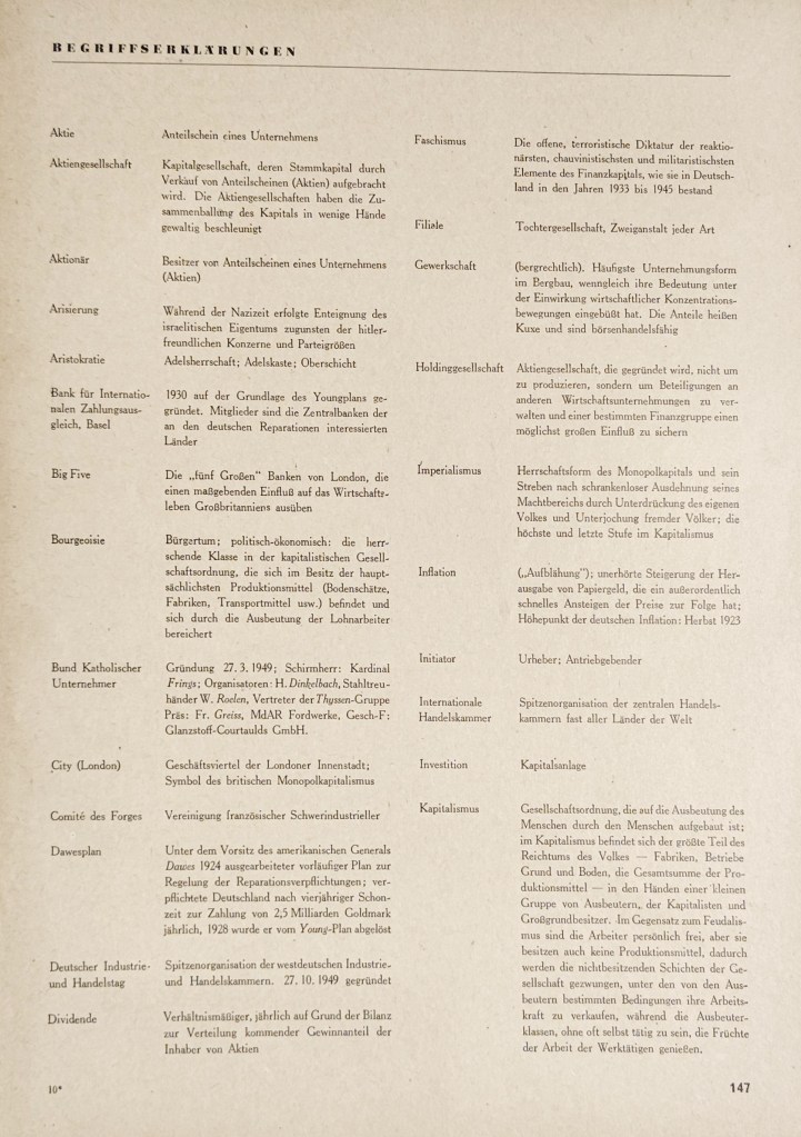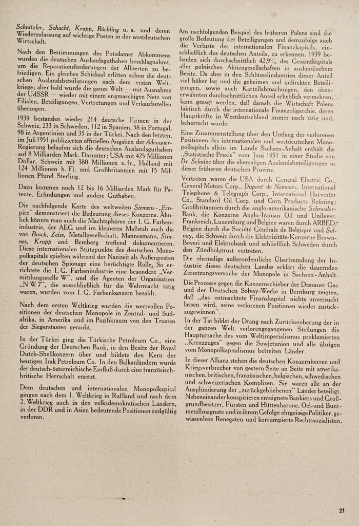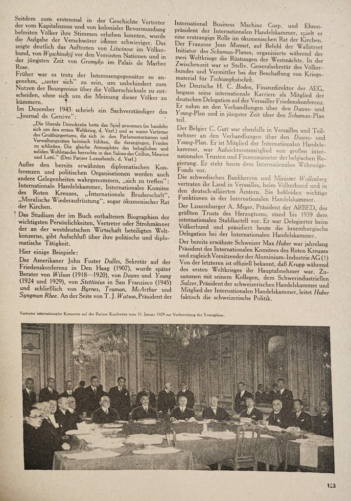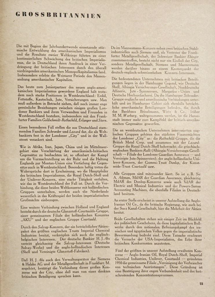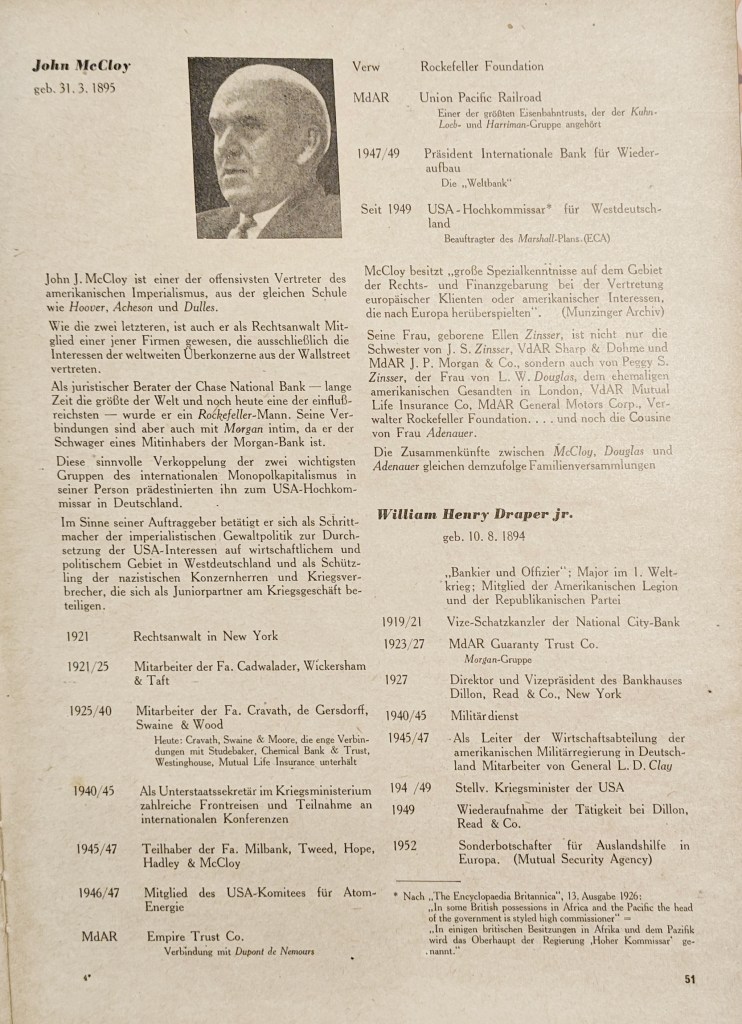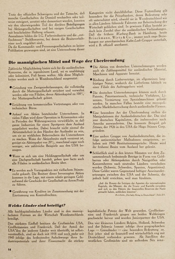 Der aggressive Atlantikpakt, die Verschwörung des internationalen Finanzkapitals gegen den Frieden, ist ein Pakt der Konzerne mit dem Ziel die Sicherung ihrer westdeutschen Beteiligungen und der Rückeroberung ihrer Positionen in den Ländern, die sich von der monopolkapitalistischen Bevormundung befreit haben.