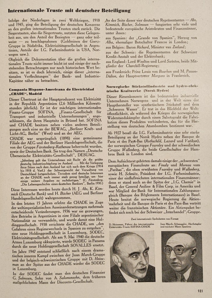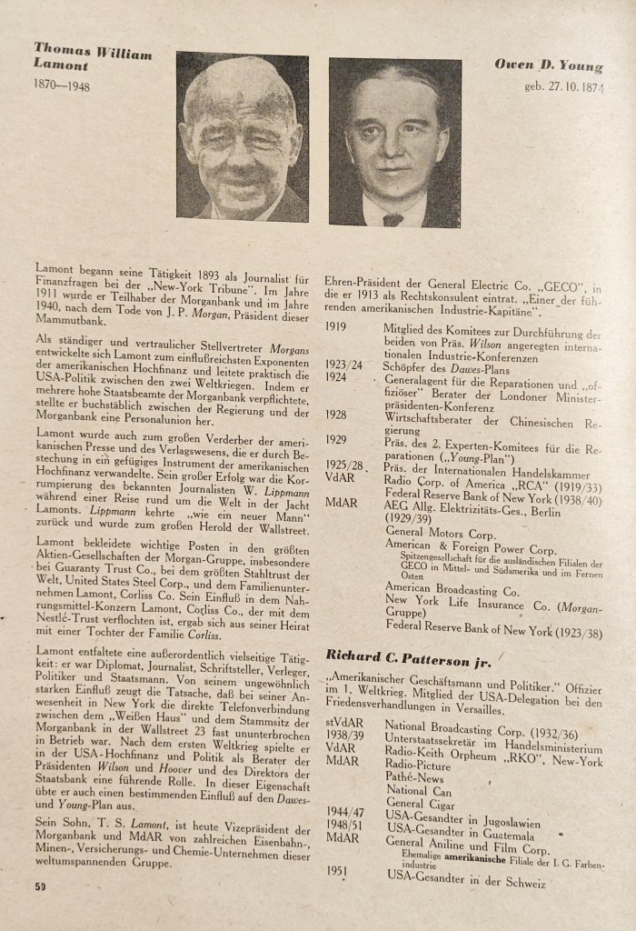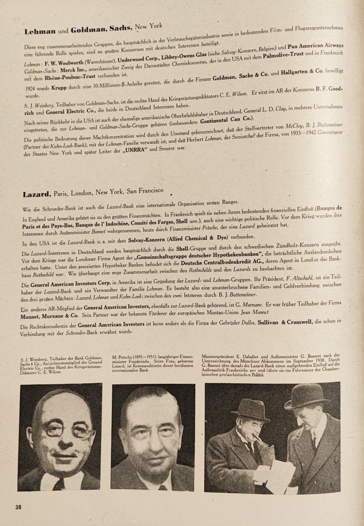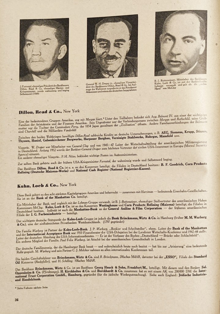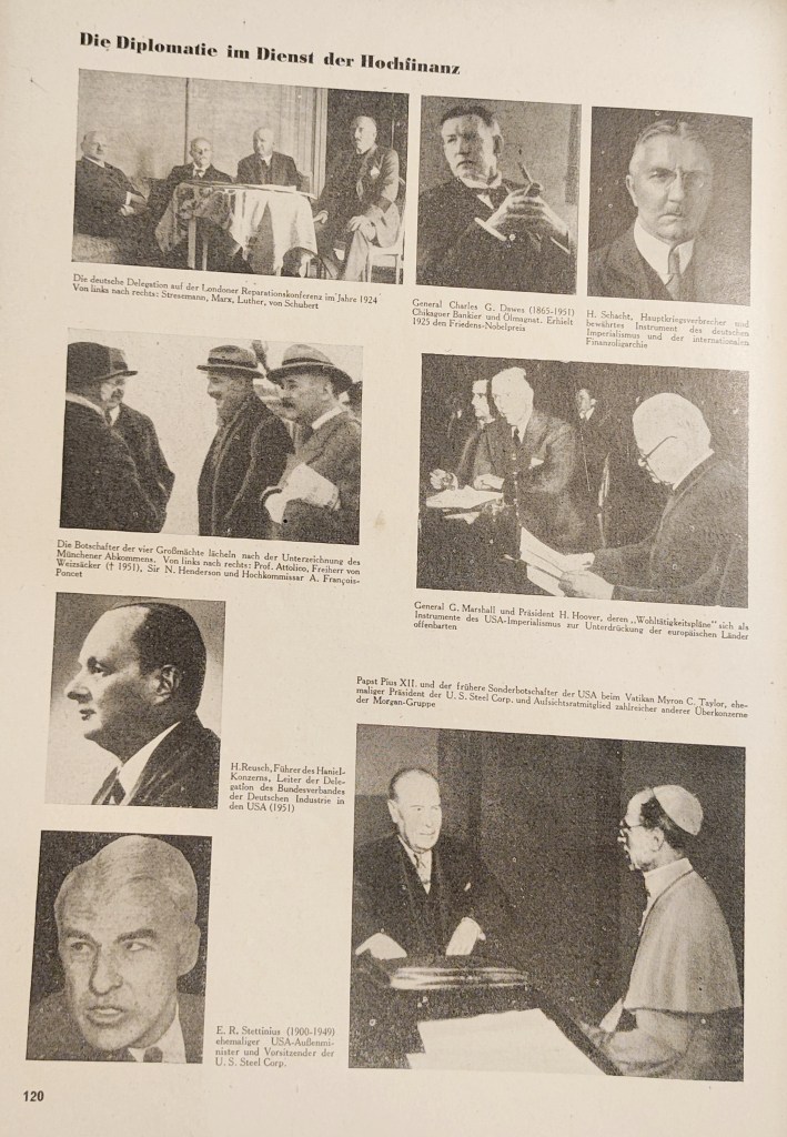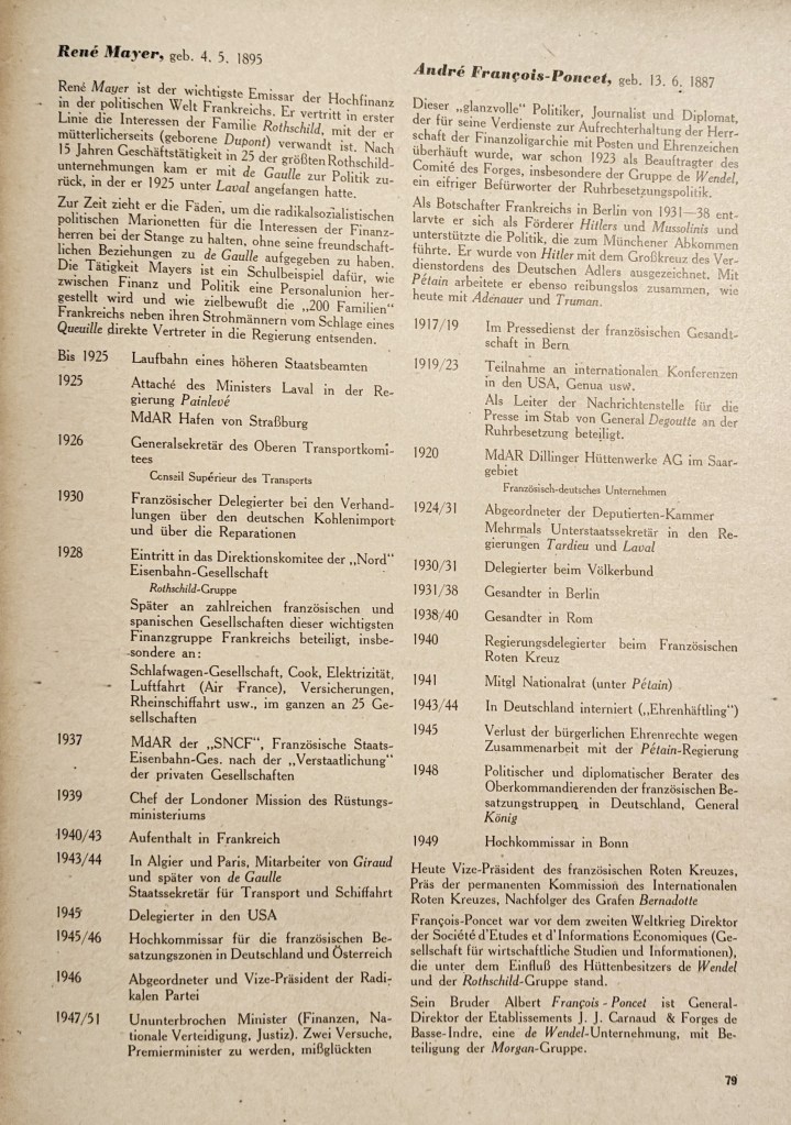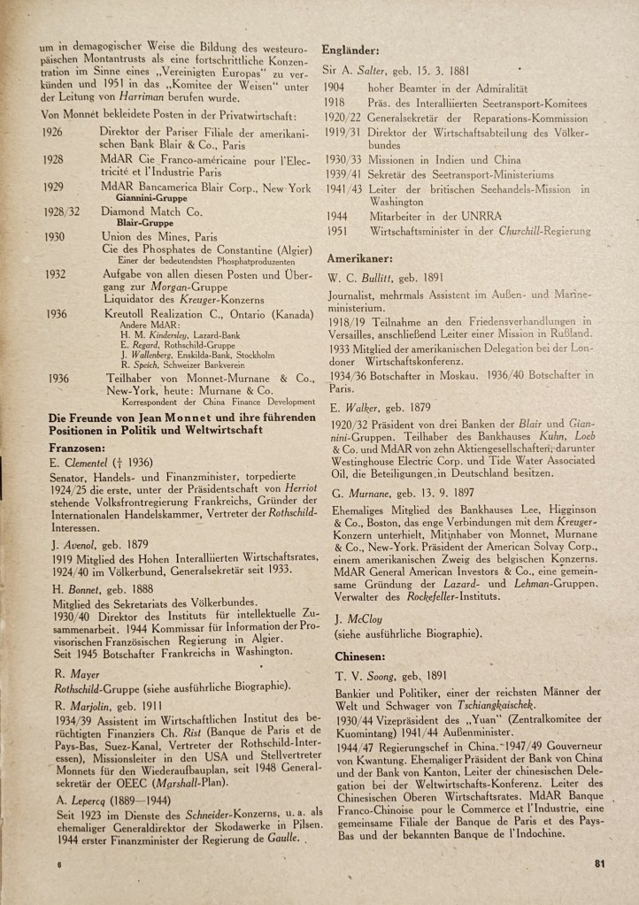 Ausführliche Biographien zeigen die unheilvolle Tätigkeit der internationalen Finanzhyänen und die enge Verflechtung zwischen Diplomatie und Finanzen auf.
