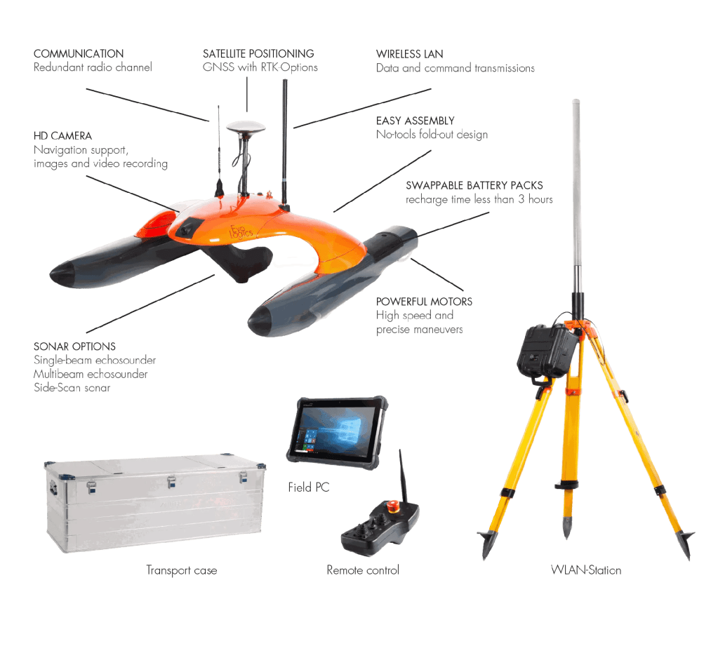 Oberflächenboje USBL, die als akustischer Knoten für Operationen, als zweiantenniger GNSS-Empfänger und Wi-Fi-Zugangspunkt dient