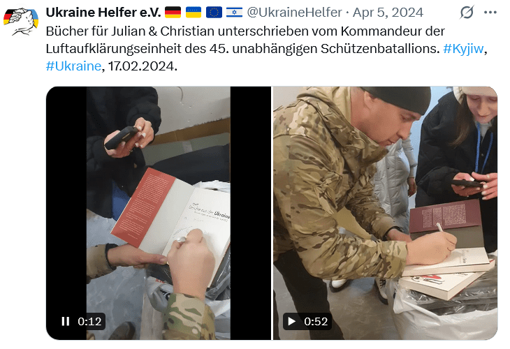 Bücher für Julian & Christian unterschrieben vom Kommandeur der Luftaufklärungseinheit des 45. unabhängigen Schützenbatallions