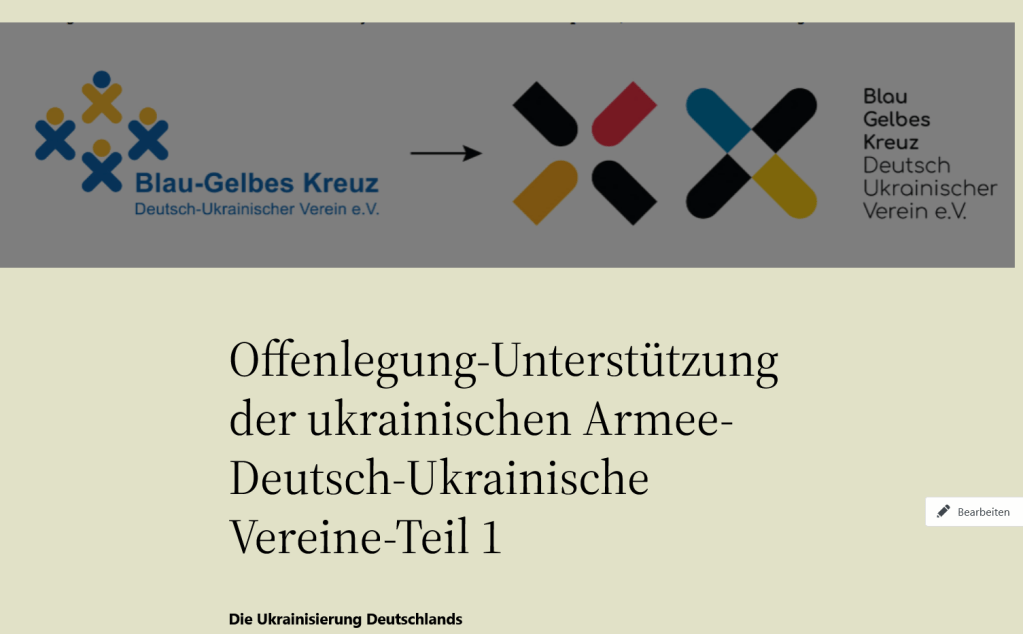 Wie deutsch-ukrainische Vereine unter dem Deckmantel humanitäre Hilfe, soziale Projekte und Kultur die ukrainische Armee unterstützen. Sie ukrainisieren die deutsche Gesellschaft, kämpfen bis zum letzten Ukrainer.
