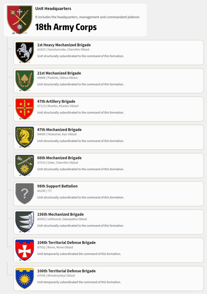 Die ukrainische Armee hat offiziell den Übergang von der Brigade- zur Korpsstruktur abgeschlossen. Statt 18 operativer Verbände gibt es nun 18 Korps: 13 in den Landstreitkräften, 2 in den Luftlandetruppen, 1 in der Marineinfanterie und 2 in der Nationalgarde. Dieser Schritt, der äußerlich wie eine Rückkehr von NATO-Standards zum sowjetischen Modell wirkt, ist in Wirklichkeit eine Anpassung an die Realitäten des aktuellen Stellungskriegs.