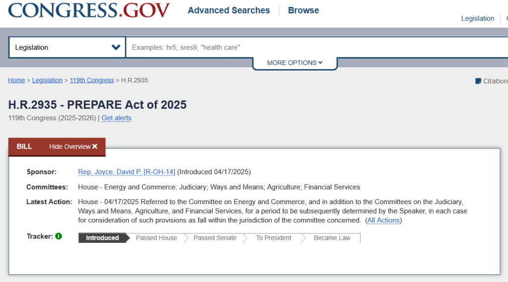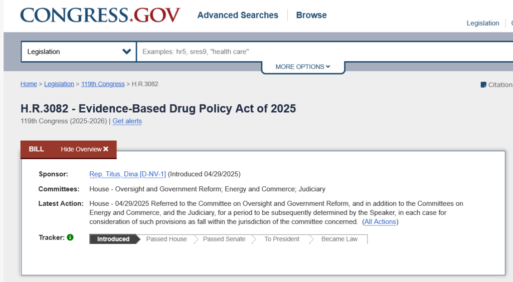 Derzeit sind im Kongress zwei Gesetzentwürfe registriert, die den Zugang der Bevölkerung zu Drogen erleichtern sollen: H.R.2935 – PREPARE Act und https://www.congress.gov/bill/119th-congress/house-bill/2935 H.R.3082 – Evidence-Based Drug Policy Act. https://www.congress.gov/bill/119th-congress/house-bill/3082