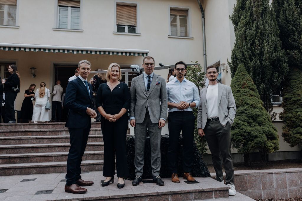 Gemeinsam mit ARX Robotics und auf Einladung des ukrainischen Botschafters und Faschisten Oleksii Makeiev feierten wir die ukrainische Unabhängigkeit und die Nationalflagge der Ukraine in der Residenz des Botschafters in Berlin.