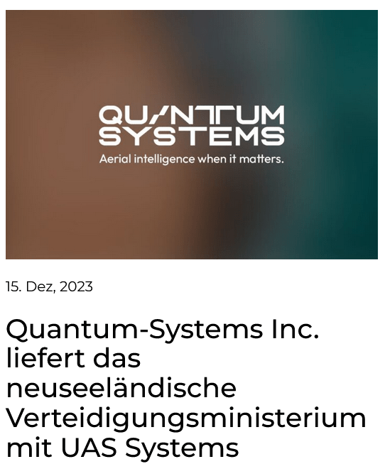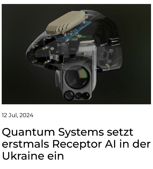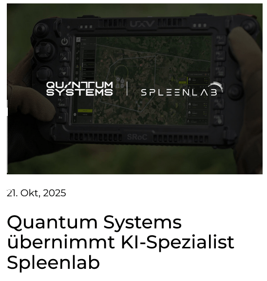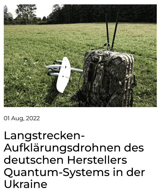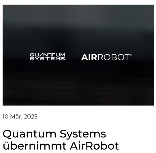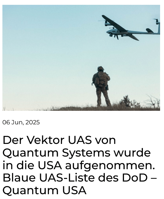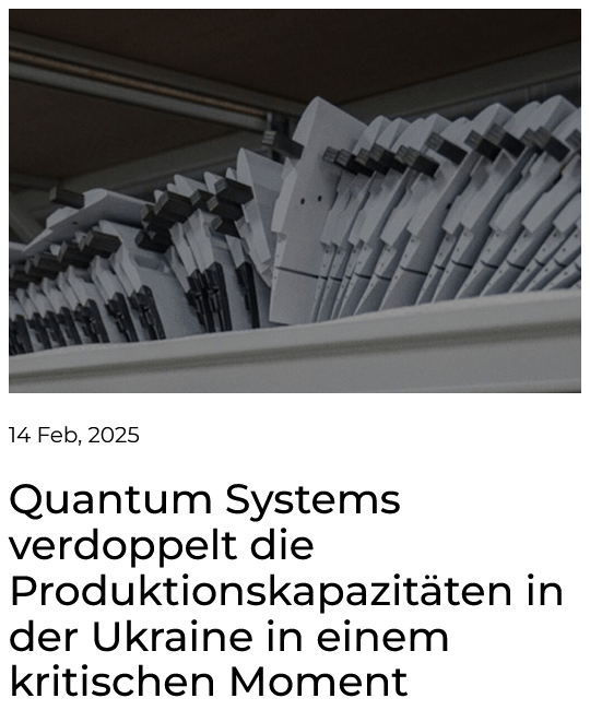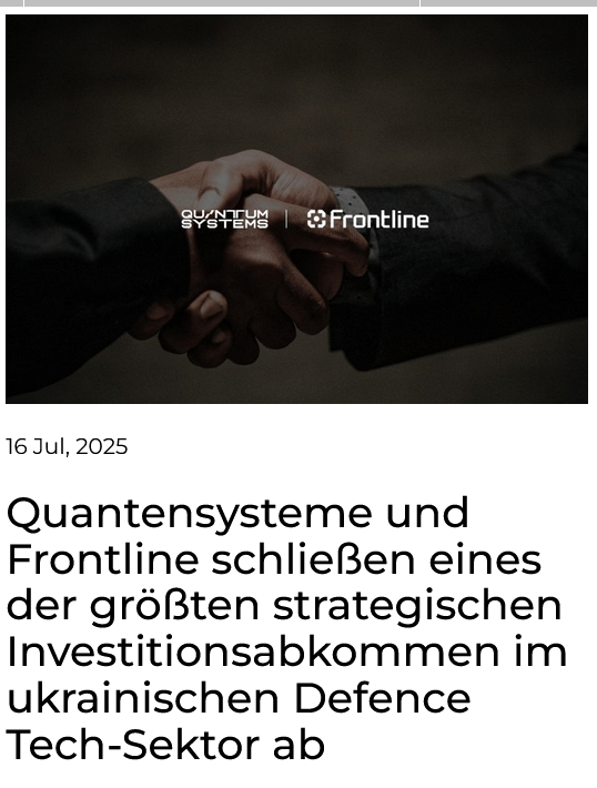 Kiew, Ukraine 14. April 2025 – Quantum-Systems, der deutsch-ukrainische Marktführer für unbemannte Luftinformationslösungen, gab heute eine strategische Kooperations- und Investitionsvereinbarung mit Frontline, einem ukrainischen Unternehmen, das sich auf militärische Robotersysteme spezialisiert hat, bekannt. Diese Zusammenarbeit ist ein wichtiger Schritt in der Integration der euro-ukrainischen Verteidigungsindustrie. https://quantum-systems.com/news/quantum-systems-partners-with-frontline