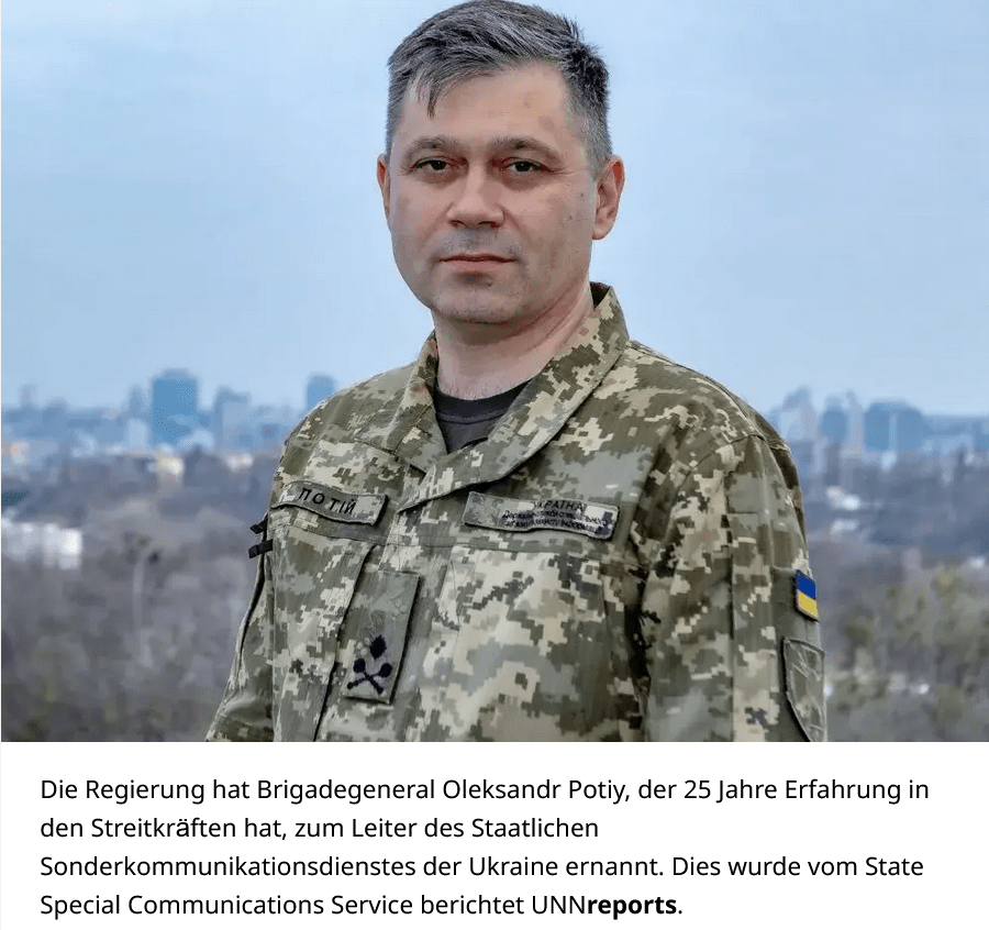 Am 15. November beschloss das Ministerkabinett der Ukraine, Brigadegeneral Oleksandr Potiy zum Leiter des Staatlichen Dienstes für besondere Kommunikation und Informationsschutz der Ukraine zu ernennen