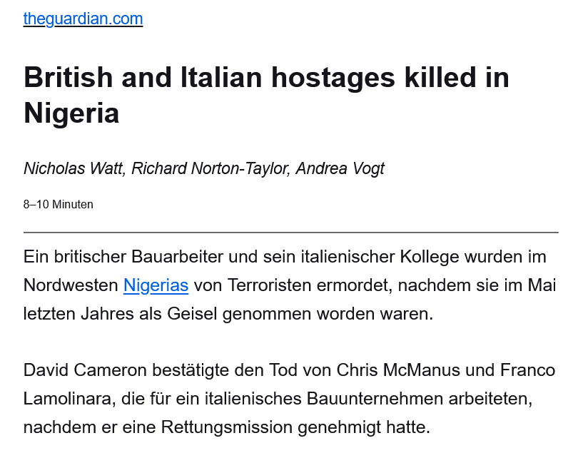 Dies bezieht sich auf eine verpfuschte Anstrengung des Special Boat Service im März 2012, um ein Paar europäischer Entführungsopfer zu retten, die von Boko Haram festgehalten wurden, die zusammenbrachen, als sie von ihren Entführern hingerichtet wurden. Details der in den Medien gemeldeten Razzia variierten von Outlet zu Outlet, was darauf hindeutet, dass widersprüchliche Informationen vom Komitee zur Verfügung gestellt wurden.
