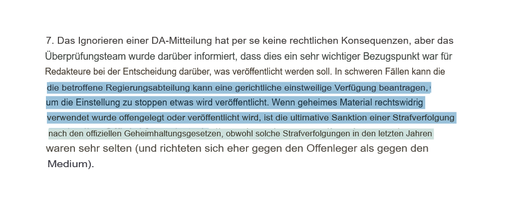 Die Dokumente bieten eine genaue Sicht auf den Zensurprozess und zeigen, wie das DSMA-Komitee „Eins-zu-Eins“ Konsultationen mit Journalisten durchführt, die über den bloßen Rat hinausgehen, und bezieht sich auf die Verwendung von „Track-Änderungen“, einer Funktion in der Textverarbeitungssoftware, die es Benutzern ermöglicht, Bearbeitungen vorzuschlagen und Kommentare hinzuzufügen.