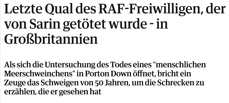 Es gab auch eine Reihe von „verschiedenen“ Anfragen im Zusammenhang mit „Porton Down „Opfern“. Es ist unklar, warum der Ausdruck „Opfer“ in umgekehrten Kommas präsentiert wurde, da es sich um etablierte zahlreiche höchst unethische menschliche Experimente handelte, die über Jahrzehnte in Porton Down, Großbritanniens führendem Forschungsinstitut für biologische und chemische Kriegsführung, durchgeführt wurden.