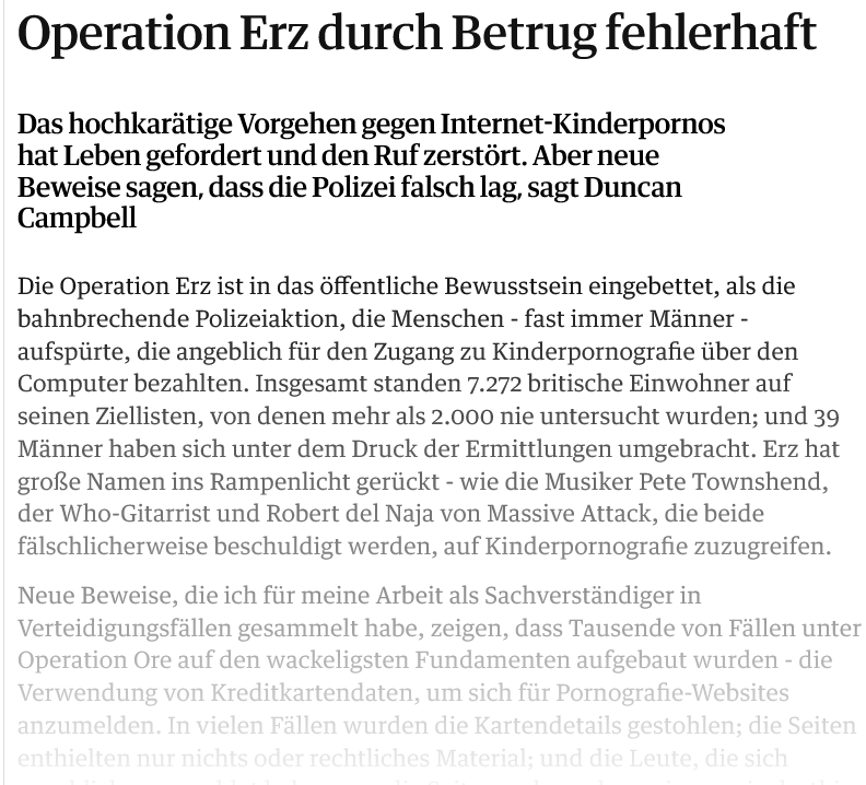 In der Operation Ore wurden Anfang der 2000er Jahre Tausende verhaftet, weil sie pädophile Inhalte heruntergeladen hatten.