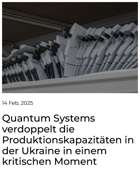 В рамках наших обязательств в Украине мы укрепляем свое присутствие через наше местное дочернее предприятие Quantum-Systems LLC, расширяя местное производство, создавая рабочие места и интегрируясь с украинскими оборонными ведомствами и новаторами.