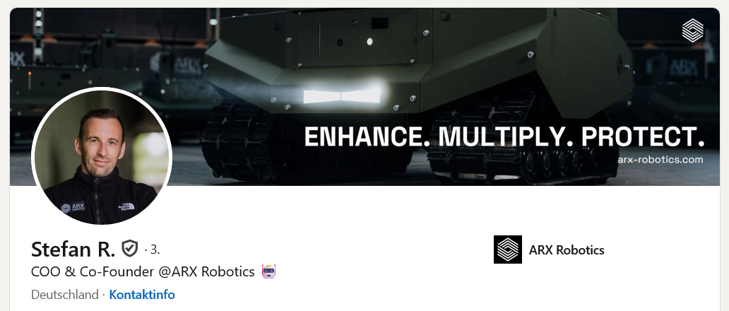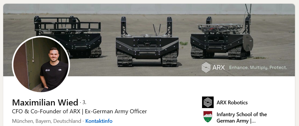 ARX Robotics — немецкий стартап в сфере оборонных технологий, разрабатывающий автономные беспилотные наземные транспортные средства (БНТС) и программное обеспечение на основе искусственного интеллекта для военных целей. Цель — цифровизация сухопутных войск и повышение безопасности за счет поддержки солдат в транспортных, разведывательных и поисково-спасательных операциях, как это продемонстрировано на примере серии «Гереон». Эти модульные системы универсальны и могут использоваться для различных целей, таких как транспортировка материалов, доставка дронами или моделирование целей, и уже находятся на вооружении европейских вооруженных сил, в том числе и украинских.