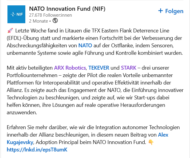 Европейский суверенитет: Стартап способствует укреплению европейской оборонной промышленности и привлек в качестве инвестора Инновационный фонд НАТО (https://www.nif.fund).