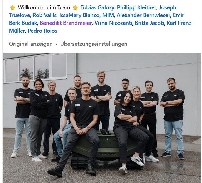 Каждое новое пополнение укрепляет нашу способность выполнять нашу миссию: создавать модульные, масштабируемые решения для автономного управления, повышающие устойчивость, адаптивность и совместимость в европейской обороне.