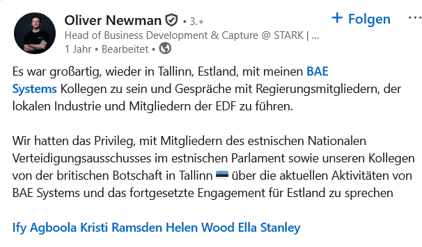 weitreichender Vernetzung mit anderen jungen Unternehmen, dem Mittelstand, OEMs, der Forschung, Politik und den Streitkräften.