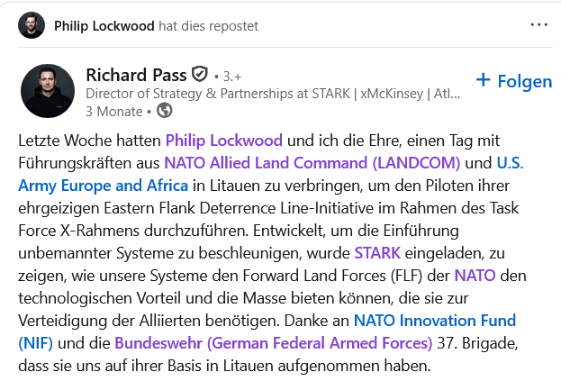 Bei STARK setzen wir uns dafür ein, Innovation und Tradition zu verbinden, indem wir Geschwindigkeit und vertrauenswürdige Expertise verbinden, um die Systeme bereitzustellen, die die NATO jetzt benötigt.