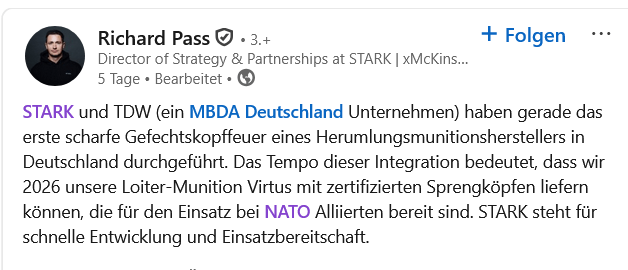 TDW und STARK entwickeln gemeinsam Gefechtskopfsysteme für Loitering Munition