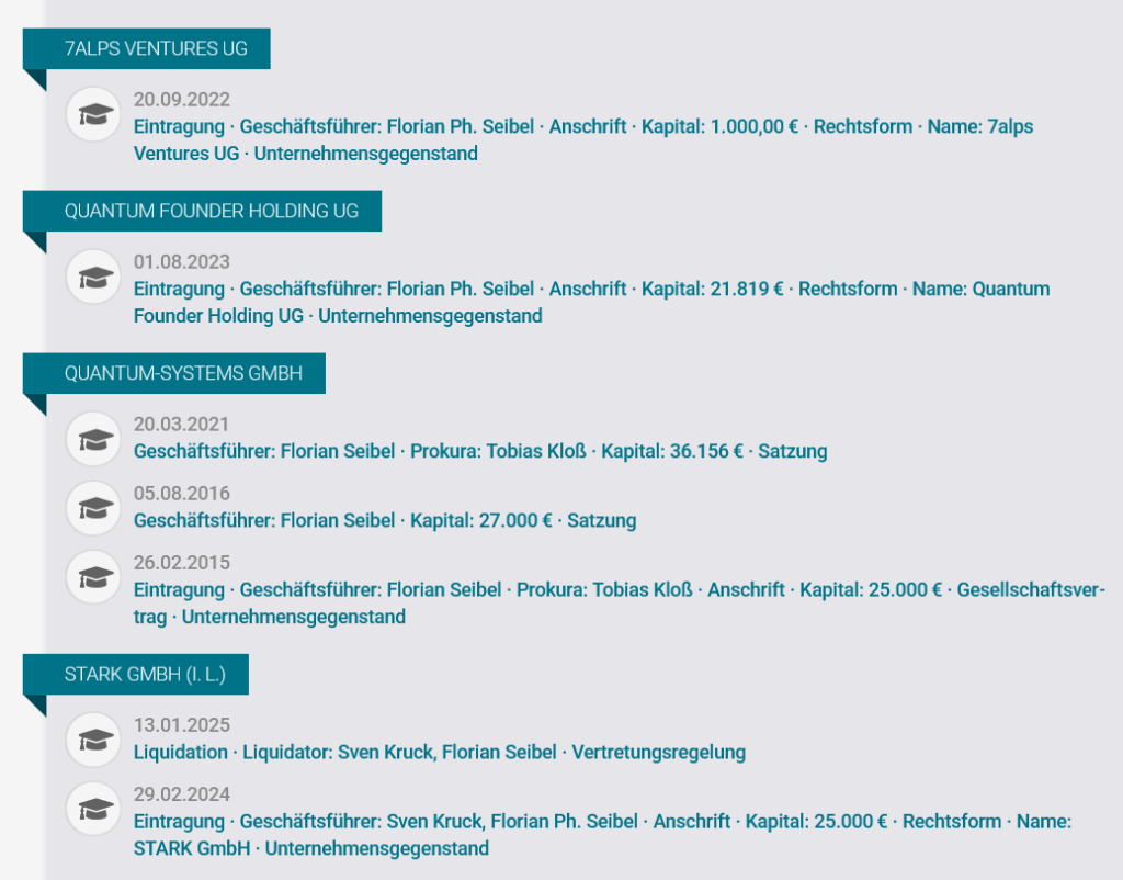 Hinter beiden Unternehmen steht der frühere Bundeswehroffizier (der deutschen Luftwaffe) und Gründer Florian Seibel.