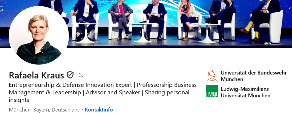 Rafaela Kraus (Experte für Unternehmertum und Verteidigungsinnovation/ Professur Unternehmensführung | Führung / Berater und Referent |