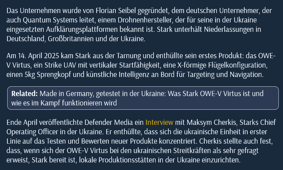 Florian Seibel, Sven Kruck, Marc A.Wietfield https://lianekilinc.com/2025/11/04/die-deutsche-ukrainische-kriegsindustrie-teil-3-quantum-systems-munchen-bwnato und https://lianekilinc.com/2025/12/12/die-deutsche-ukrainische-kriegsindustrie-teil-4-arx-robotics