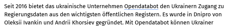 С 2016 года украинская компания Opendatabot предоставляет украинцам доступ к государственным данным из важнейших государственных реестров.