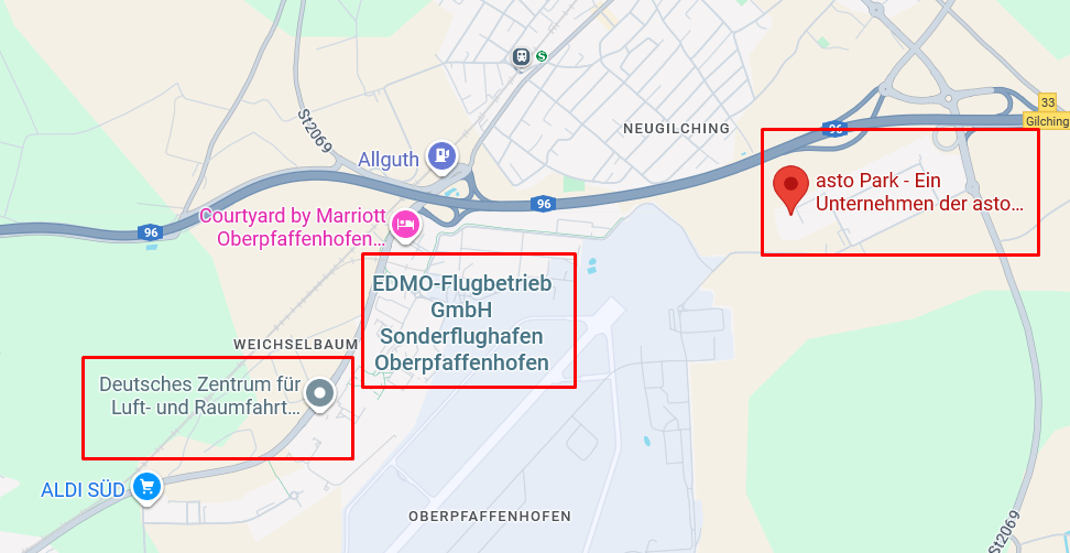 Аэрокосмический и технологический парк ASTO в Гильхинге, расположенный непосредственно рядом со специальным аэропортом Оберпфаффенхофен, является домом для нескольких немецких высокотехнологичных компаний.