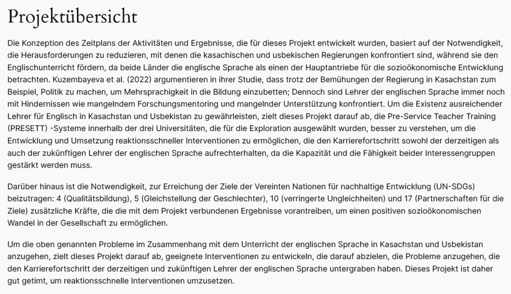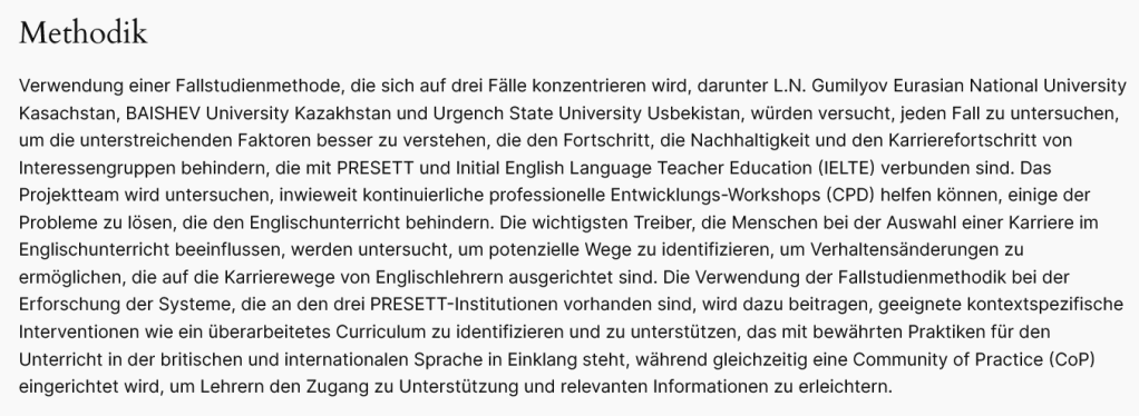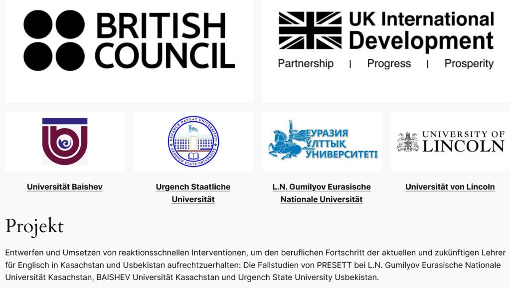 Die Entwicklung des Programms British Council (BC) zur „beschleunigten Erlernung des Englischen in Zentralasien“ AELLCA https://kazakhstan.britishcouncil.org/programmes/english-programmes/english-in-education/aellca-accelerating-english-language-learning-central-asia