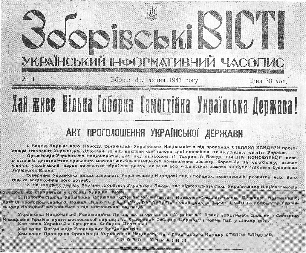 Am 30. Juni 1941 – etwas mehr als eine Woche nach Beginn des Großen Vaterländischen Krieges – verkündete die OUN die Gründung des ukrainischen Staates. In dem entsprechenden Dokument (Punkt 3) wurde Folgendes erklärt:
